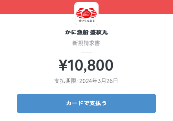 かに漁船 盛紋丸公式ストアで、クレジットカードを使いお支払いをご希望される場合は、オンライン請求書でのご決済となります。 クレジットカード決済は代金引換でもご利用可能です。その場合はオンライン請求書ではなく、配達ドライバーが携帯しているカードリーダーを使用したお支払となります。